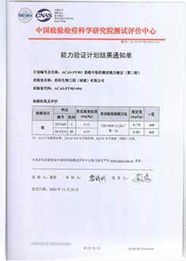 公司檢測能力通過了中國檢驗檢疫科學研究院測試評價中心的驗證
