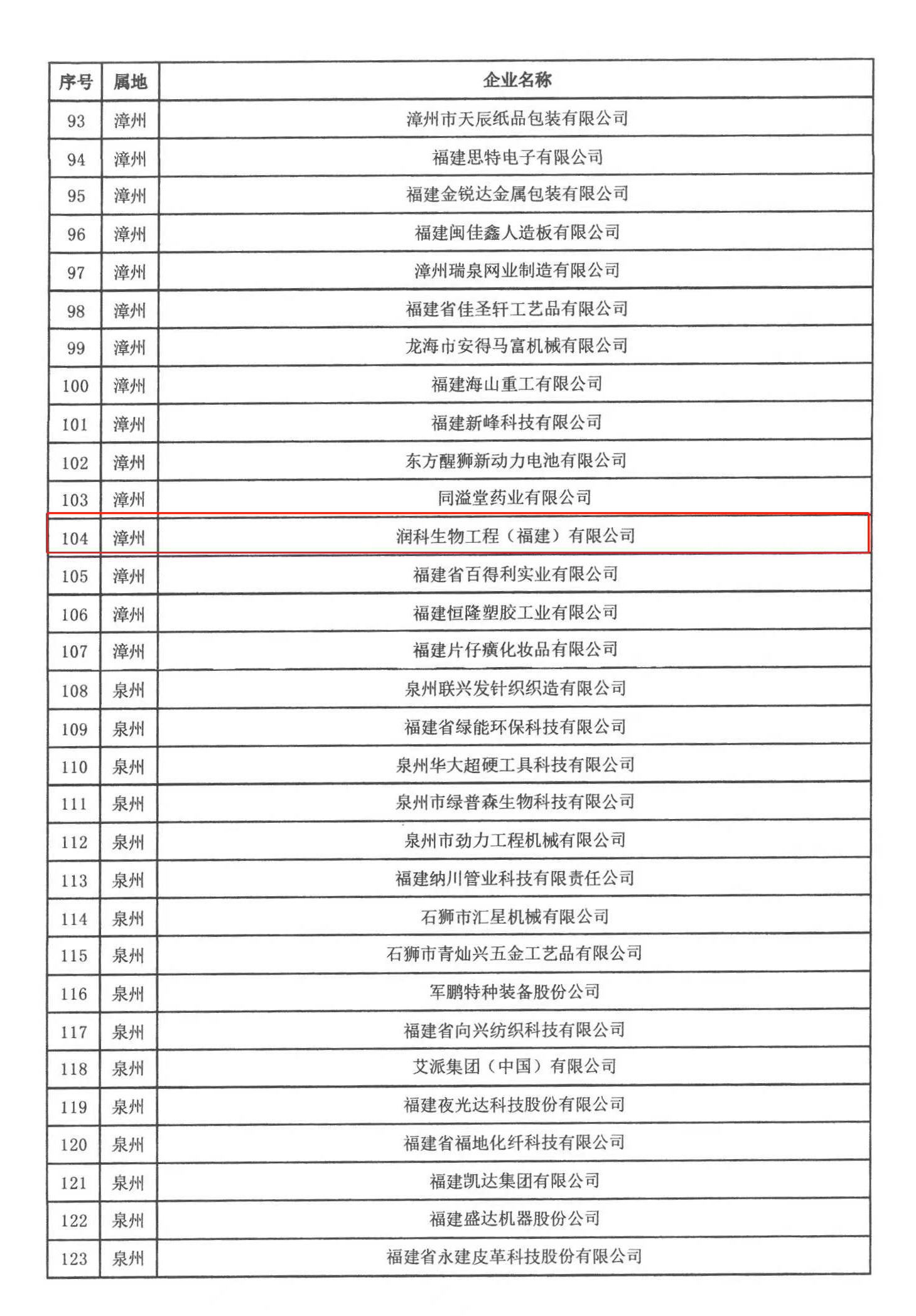 ? 2021年11月20日由福建省工業(yè)和信息化廳認(rèn)定潤(rùn)科生物工程(福建)有限公司為福建省“專精特新”中小企業(yè)。