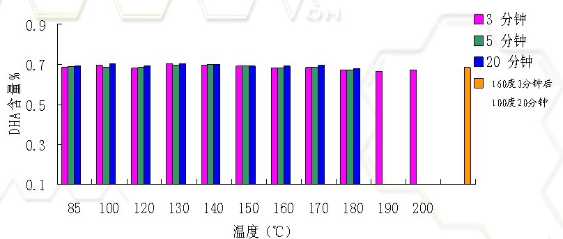 ??????? 1、在80-200℃范圍內,模擬常用烹調方式對DHA的穩定性進行考察。